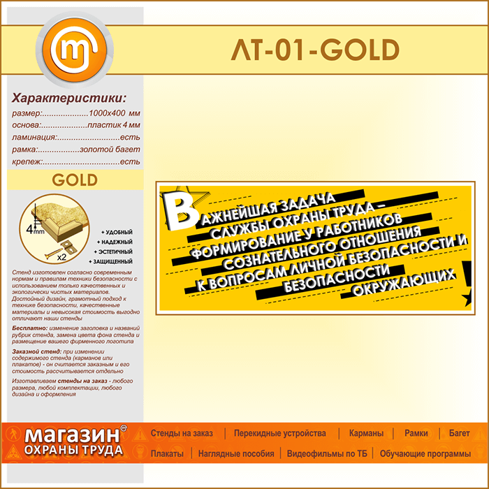 Лозунг «Важнейшая задача службы охраны труда...» (LT-01-GOLD) в Кызыле купить