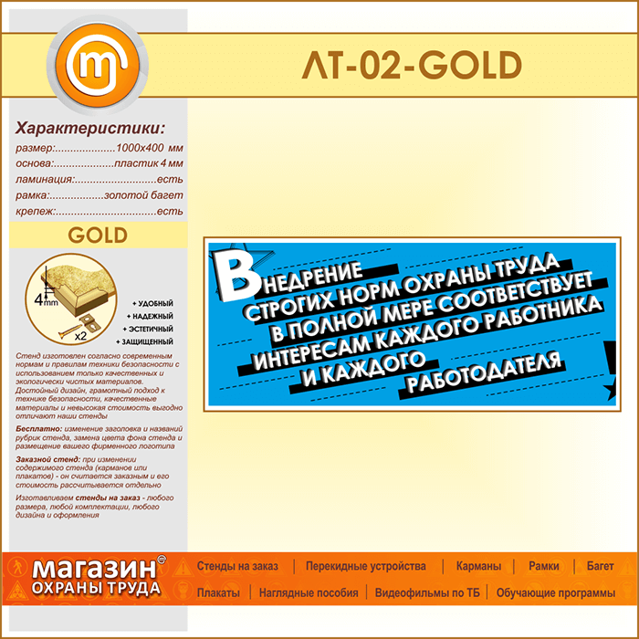 Лозунг «Внедрение строгих норм охраны труда...» (LT-02-GOLD) в Кызыле купить