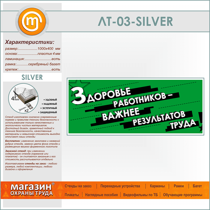 Лозунг «Здоровье работников - важнее результатов труда» (LT-03-SILVER) в Кызыле купить