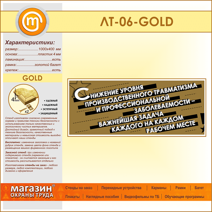 Лозунг «Снижение уровня производственного травматизма...» (LT-06-GOLD) в Кызыле купить