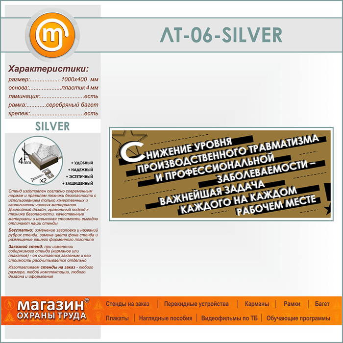 Лозунг «Снижение уровня производственного травматизма...» (LT-06-SILVER) в Кызыле купить