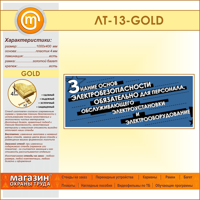 Лозунг «Знание основ электробезопасности обязательно...» (LT-13-GOLD) в Кызыле купить