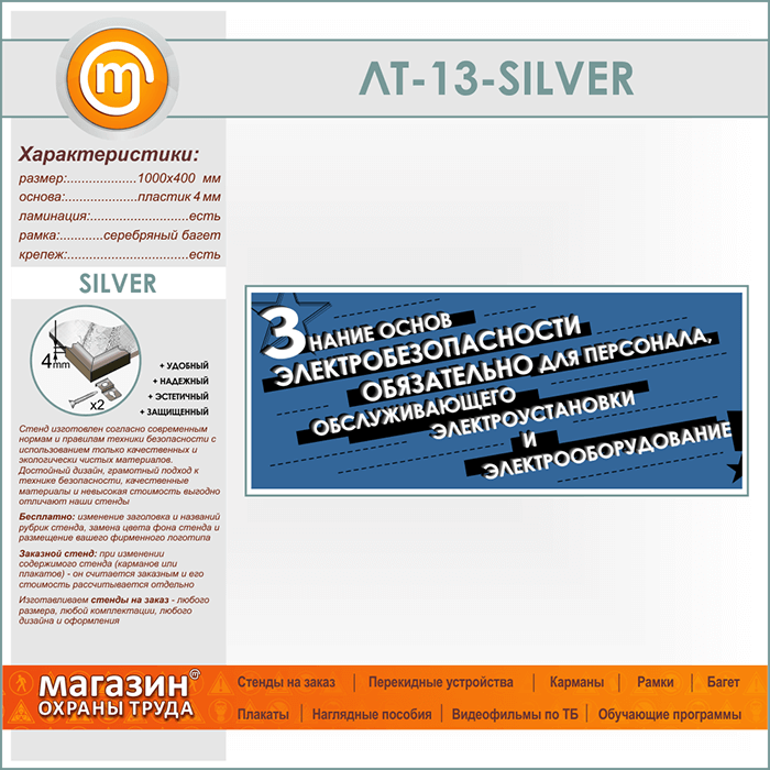 Лозунг «Знание основ электробезопасности обязательно...» (LT-13-SILVER) в Кызыле купить