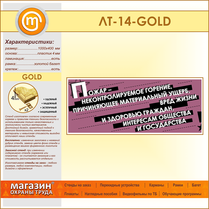 Лозунг «Пожар - неконтроллируемое горение...» (LT-14-GOLD) в Кызыле купить