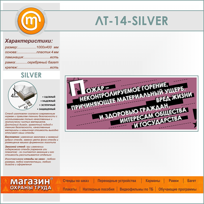 Лозунг «Пожар - неконтроллируемое горение...» (LT-14-SILVER) в Кызыле купить