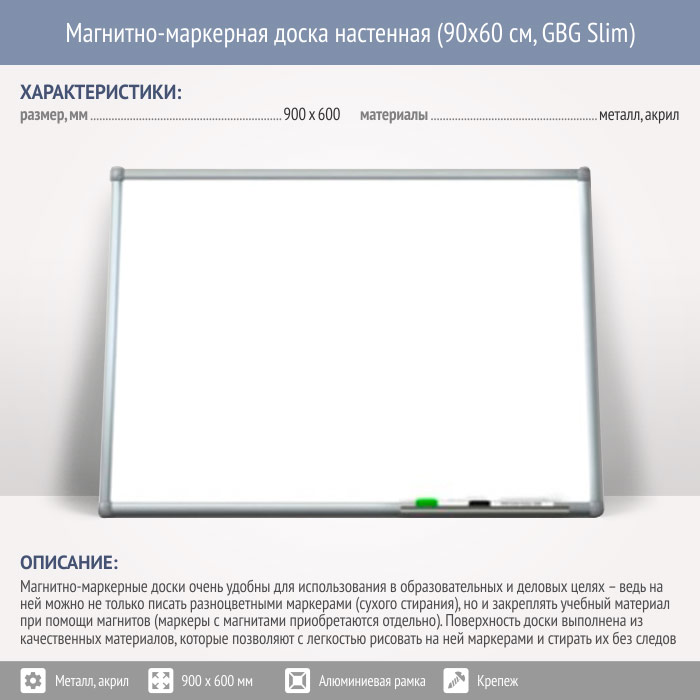 Магнитно-маркерная доска настенная (90x60 см, GBG Slim) в Кызыле купить