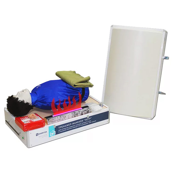 Главная Кабинеты охраны труда Манекены-тренажеры СЛР Тренажер-манекен «Пётр» для отработки навыков тушения горящего тела при пожаре |