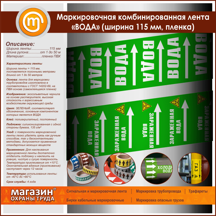 Маркировочная комбинированная лента «ВОДА» (ширина 115 мм, самоклеящаяся плёнка) в Кызыле купить
