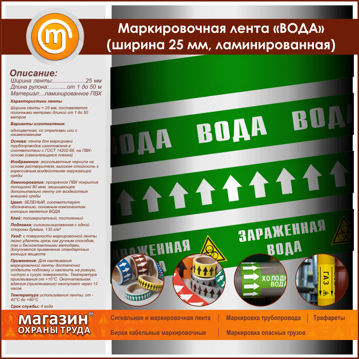 Маркировочная лента «ВОДА» (ширина 25 мм, самоклеящаяся плёнка с ламинированием) в Кызыле купить