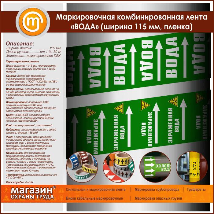 Маркировочная комбинированная лента «ВОДА» (ширина 115 мм, самоклеящаяся плёнка с ламинированием) в Кызыле купить