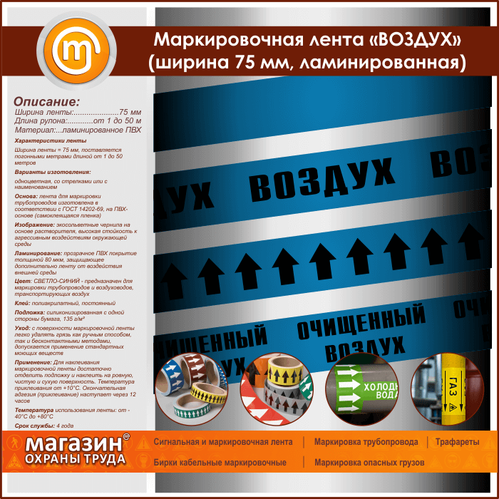 Маркировочная лента «ВОЗДУХ» (ширина 75 мм, самоклеящаяся плёнка с ламинированием) в Кызыле купить