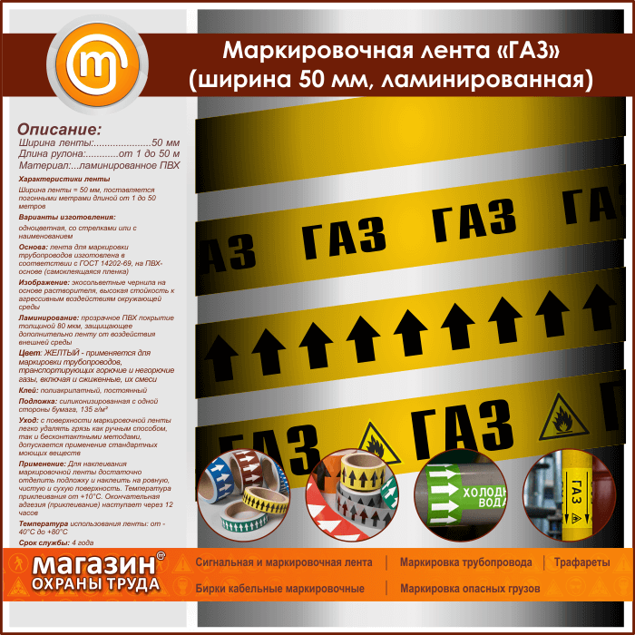 Маркировочная лента «ГАЗ» (ширина 50 мм, самоклеящаяся плёнка с ламинированием) в Кызыле купить