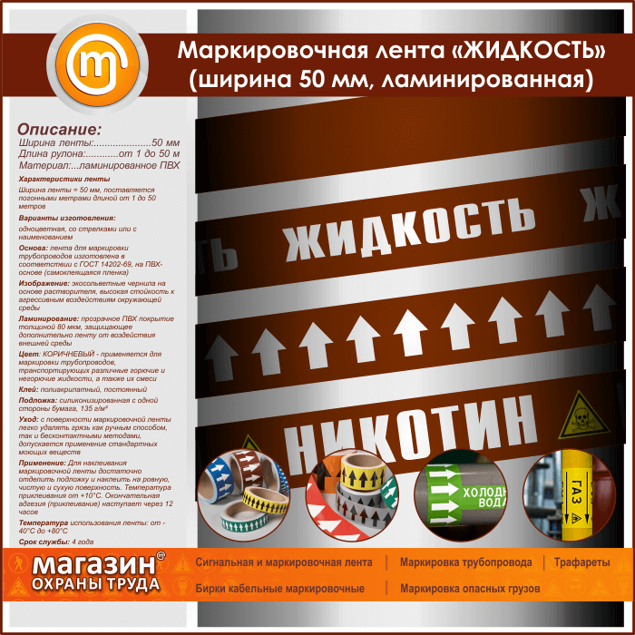Маркировочная лента «ЖИДКОСТЬ» (ширина 50 мм, самоклеящаяся плёнка с ламинированием) в Кызыле купить