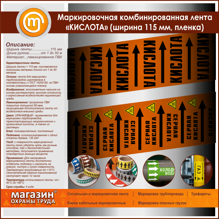 Маркировочная комбинированная лента «КИСЛОТА» (ширина 115 мм, самоклеящаяся плёнка с ламинированием) в Кызыле купить
