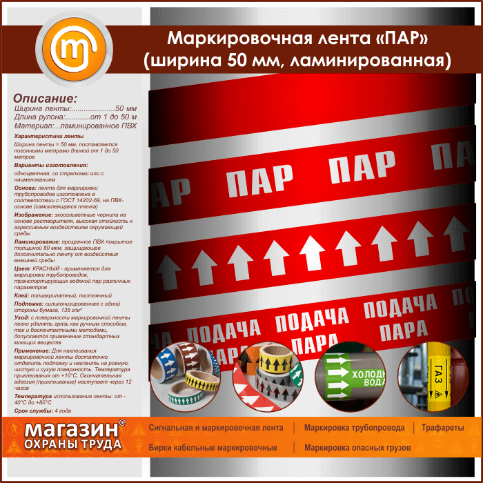 Маркировочная лента «ПАР» (ширина 50 мм, самоклеящаяся плёнка) в Кызыле купить