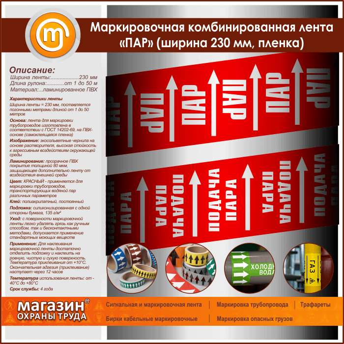 Маркировочная комбинированная лента «ПАР» (ширина 230 мм, самоклеящаяся плёнка) в Кызыле купить
