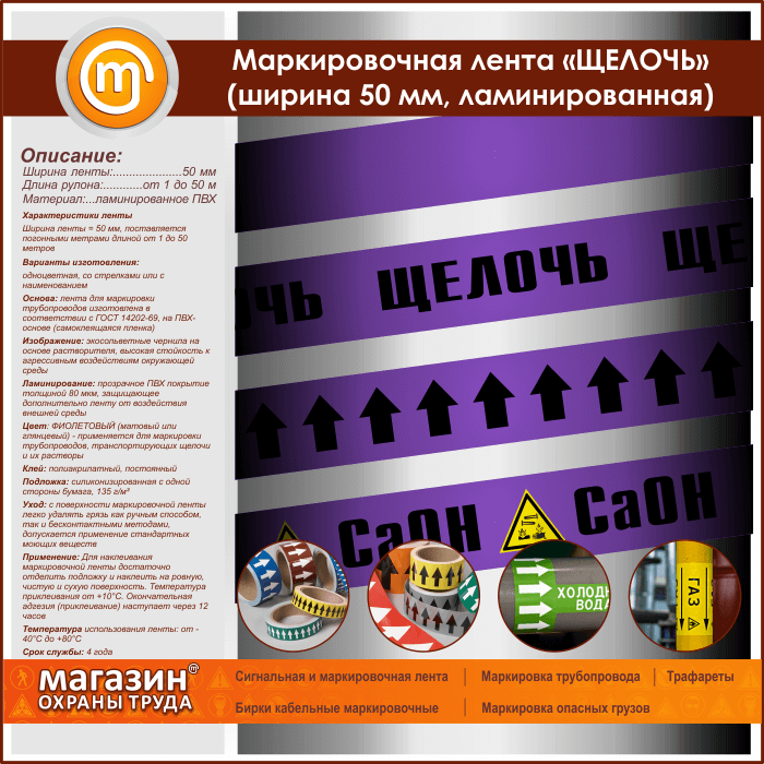 Маркировочная лента «ЩЕЛОЧЬ» (ширина 50 мм, самоклеящаяся плёнка с ламинированием) в Кызыле купить