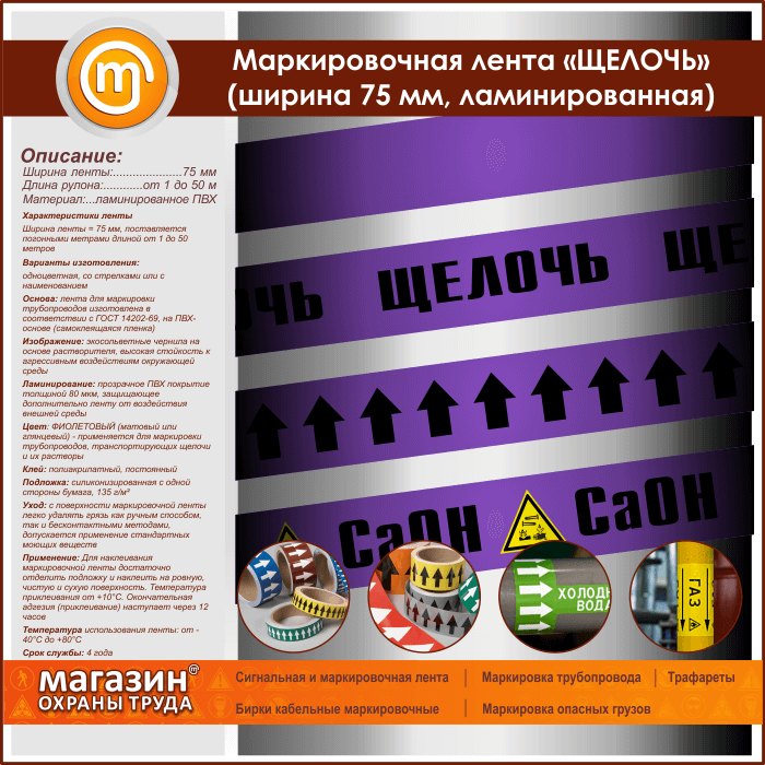 Маркировочная лента «ЩЕЛОЧЬ» (ширина 75 мм, самоклеящаяся плёнка с ламинированием) в Кызыле купить