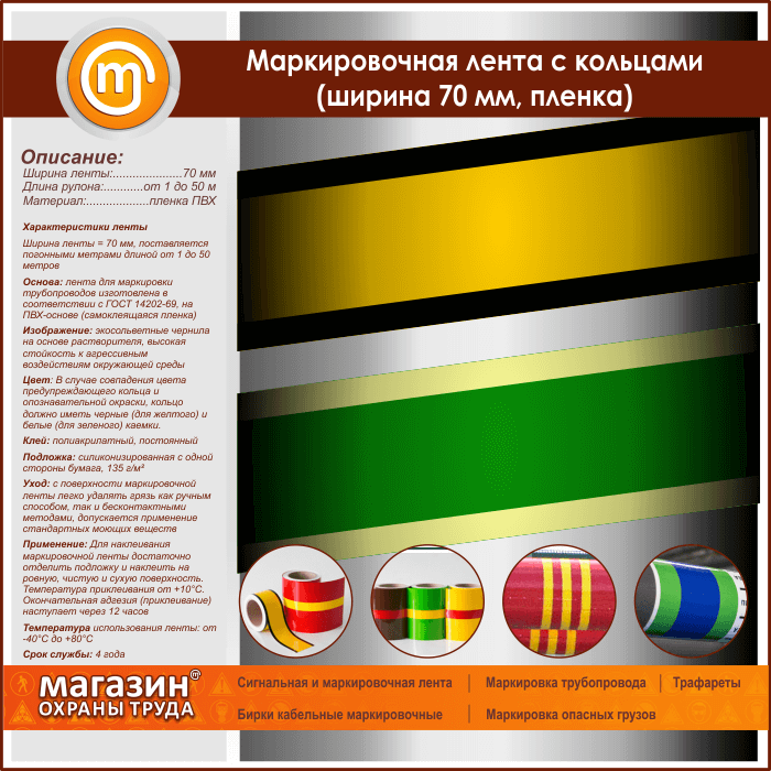 Маркировочная лента с кольцами (ширина 70 мм, самоклеящаяся плёнка) в Кызыле купить