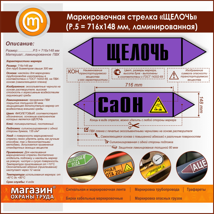 Маркировочная стрелка «ЩЕЛОЧЬ» (P.5 = 716х148 мм, самоклеящаяся плёнка с ламинированием) в Кызыле купить