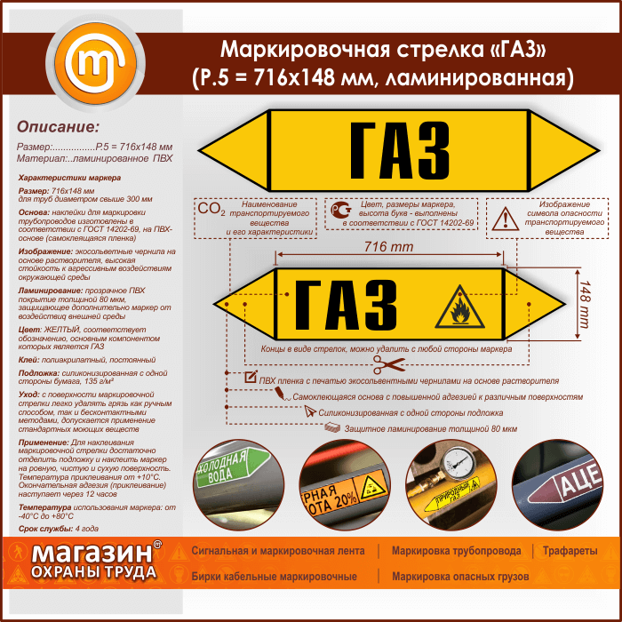 Маркировочная стрелка «ГАЗ» (P.5 = 716х148 мм, самоклеящаяся плёнка с ламинированием) в Кызыле купить