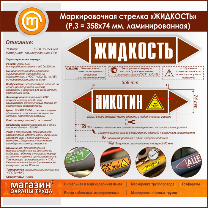 Маркировочная стрелка «ЖИДКОСТЬ» (P.3 = 358х74 мм, самоклеящаяся плёнка с ламинированием) в Кызыле купить