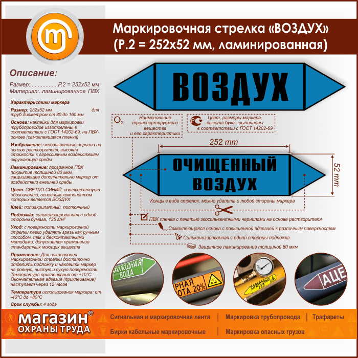 Маркировочная стрелка «ВОЗДУХ» (P.2 = 252х52 мм, самоклеящаяся плёнка с ламинированием) в Кызыле купить