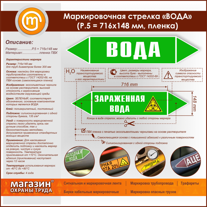 Маркировочная стрелка «ВОДА» (P.5 = 716х148 мм, самоклеящаяся плёнка) в Кызыле купить