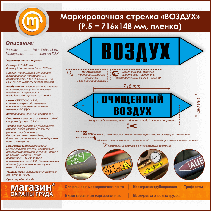 Маркировочная стрелка «ВОЗДУХ» (P.5 = 716х148 мм, самоклеящаяся плёнка) в Кызыле купить