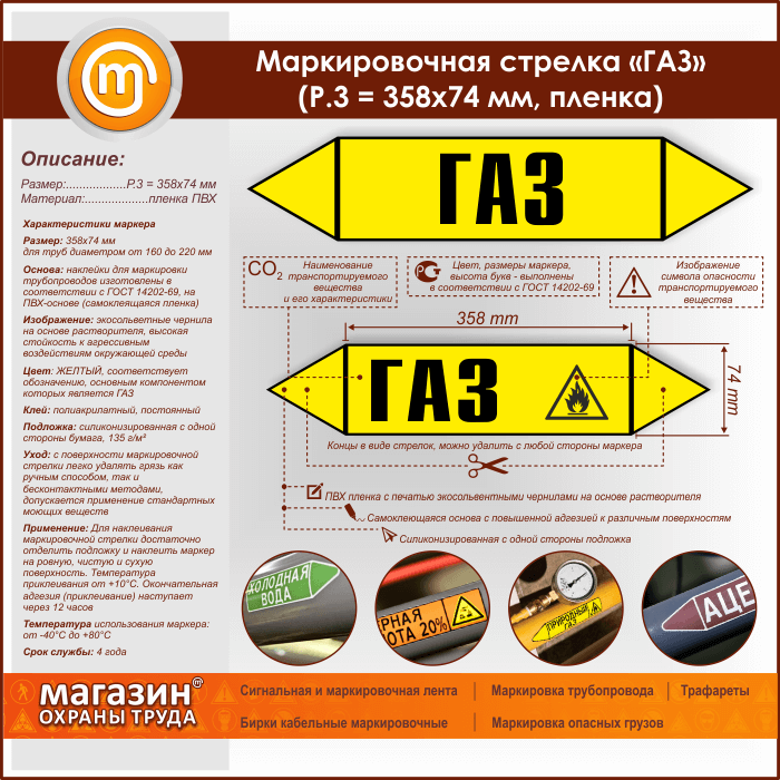 Маркировочная стрелка «ГАЗ» (P.3 = 358х74 мм, самоклеящаяся плёнка) в Кызыле купить