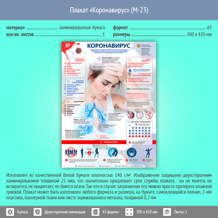 Плакат «Коронавирус» (М-23, ламинированная бумага, А3, 1 лист) в Кызыле купить