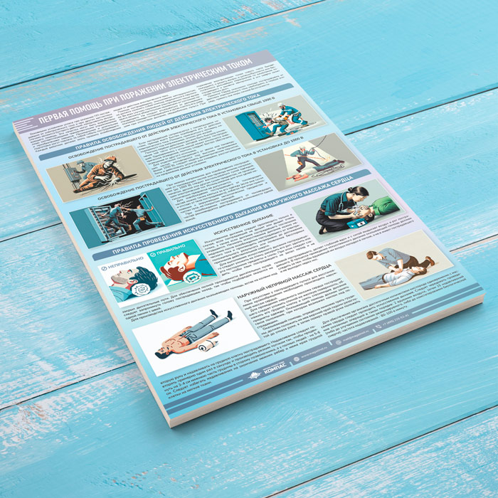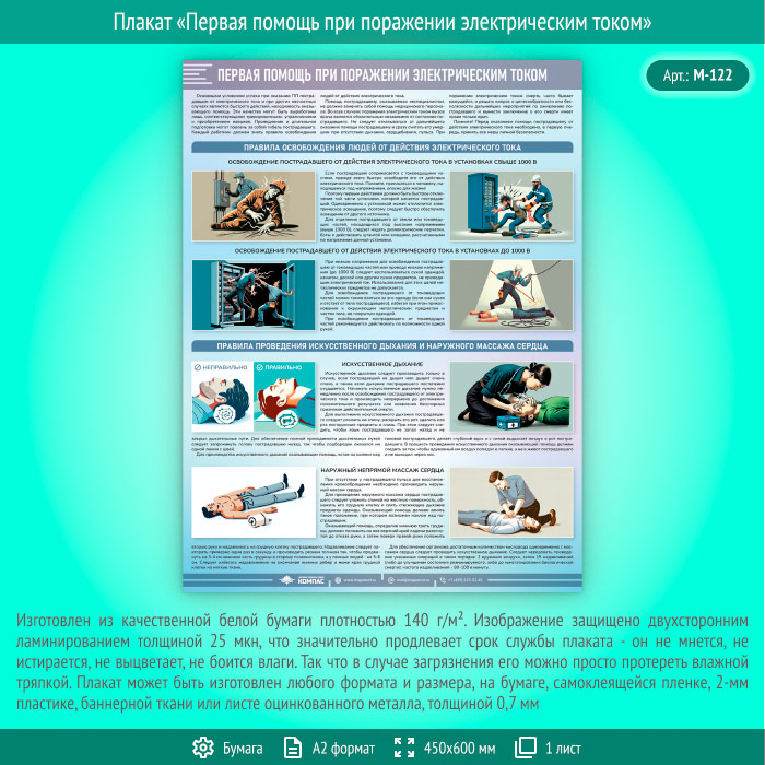 Плакат «Первая помощь при поражении электрическим током» (М-122, ламинированная бумага, А2, 1 лист) в Кызыле купить