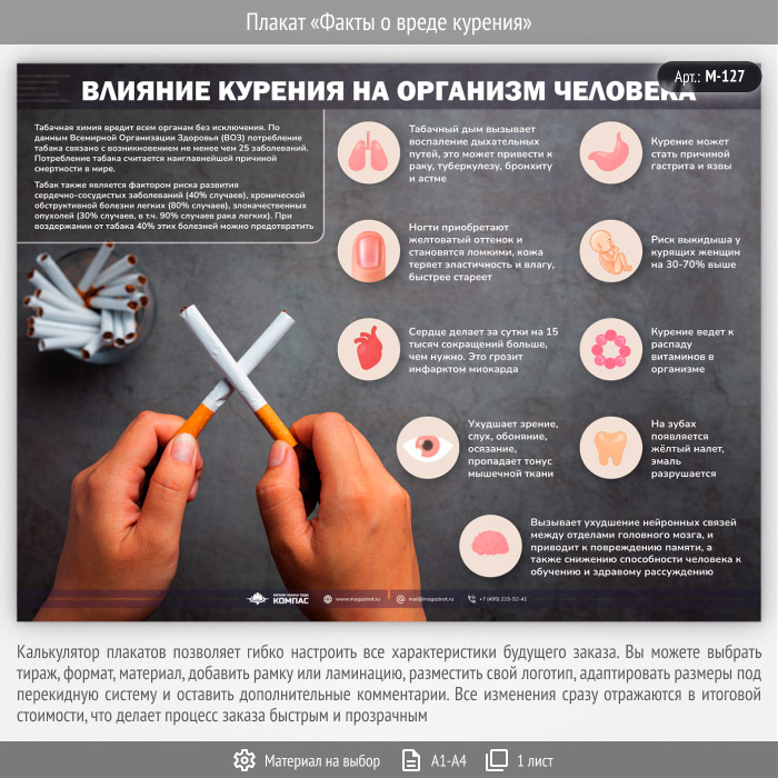 Плакат «Факты о вреде курения» (М-127, 1 лист) в Кызыле купить