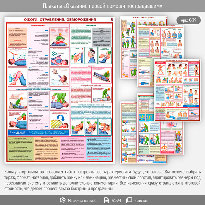 Плакат «Оказание первой помощи пострадавшим» (С-39, 6 листов) в Кызыле купить