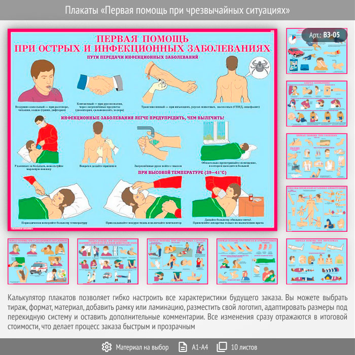 Плакаты «Первая помощь при чрезвычайных ситуациях» (ВЗ-05, 10 листов) в Кызыле купить