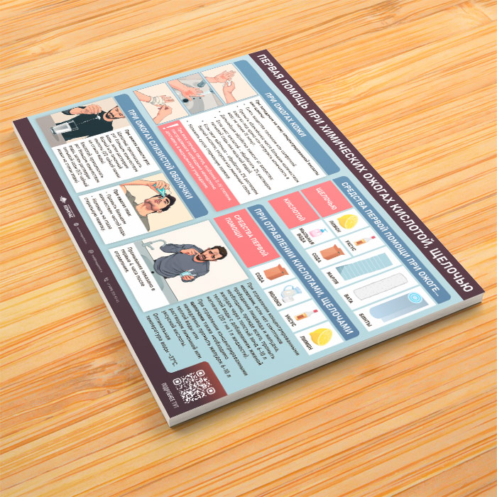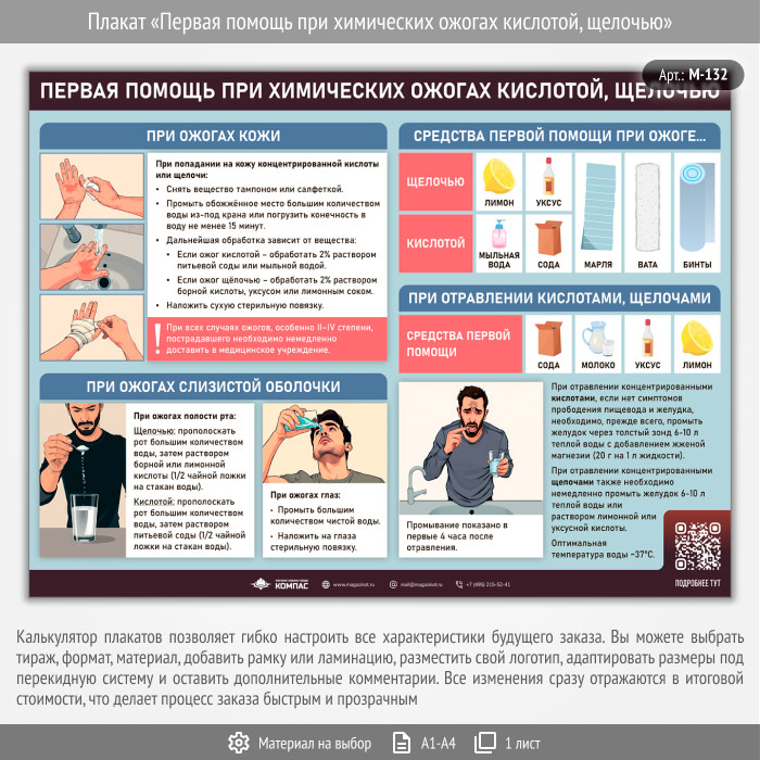 Плакат «Первая помощь при химических ожогах кислотой, щелочью» с QR (М-132, 1 лист) в Кызыле купить