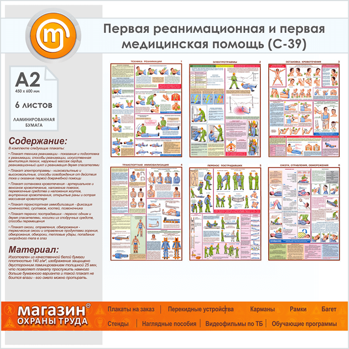 Плакат «Оказание первой помощи пострадавшим» (С-39, ламинированная бумага, А2, 6 листов) в Кызыле купить