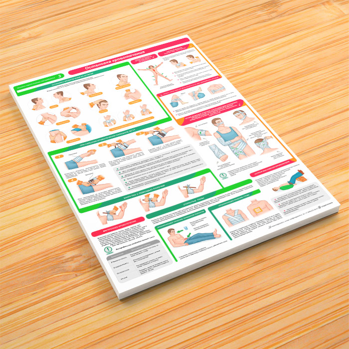 Плакаты «Первая реанимационная и первая медицинская помощь» (М-39, ламинированная бумага, А2, 6 листов) в Кызыле купить