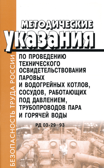 Методические указания по проведению технического освидетельствования паровых и водогрейных котлов, сосудов, работающих под давлением, трубопроводов пара и горячей воды. РД 03-29-93 (ЛД-103) в Кызыле купить