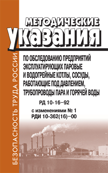 Методические указания по обследованию предприятий, эксплуатирующих паровые и водогрейные котлы, сосуды, работающие под давлением, трубопроводы пара и горячей воды. РД 10-16-92 (ЛД-112) в Кызыле купить
