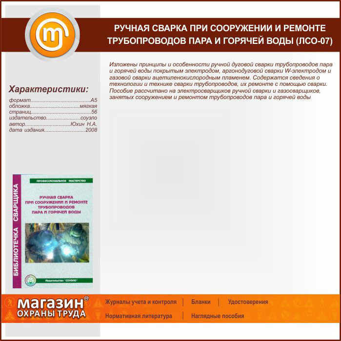 Ручная сварка при сооружении и ремонте трубопроводов пара и горячей воды (ЛСО-07) в Кызыле купить