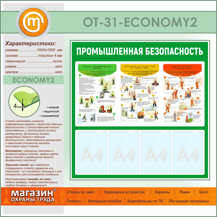 Стенд «Промышленная безопасность» с 4 карманами (OT-31-ECONOMY2) в Кызыле купить