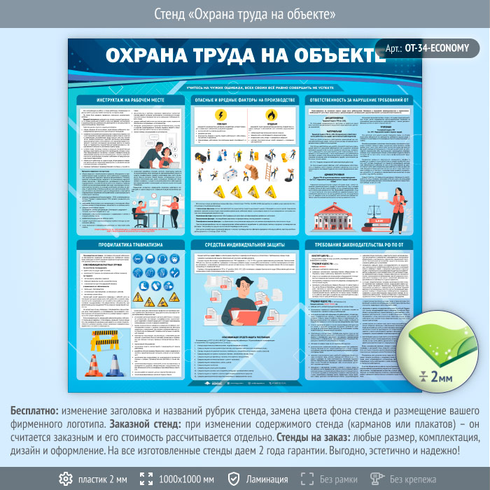 Стенд «Охрана труда на объекте» (OT-34-ECONOMY) в Кызыле купить