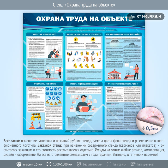 Стенд «Охрана труда на объекте» (OT-34-SUPERSLIM) в Кызыле купить