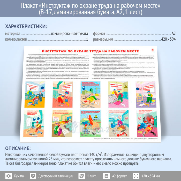 Плакат «Инструктаж по охране труда на рабочем месте» (В-17, ламинированная бумага, А2, 1 лист) в Кызыле купить