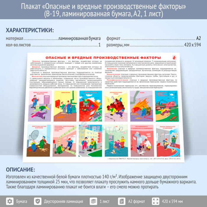 Плакат «Опасные и вредные производственные факторы» (В-19, ламинированная бумага, А2, 1 лист) в Кызыле купить