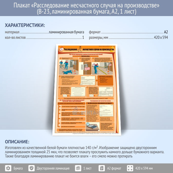 Плакат «Расследование несчастного случая на производстве» (В-23, ламинированная бумага, А2, 1 лист) в Кызыле купить