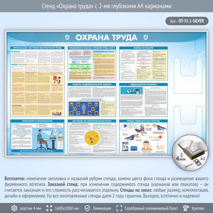 Стенд «Охрана труда» с 2-мя глубокими А4 карманами (OT-35.1-SILVER) в Кызыле купить