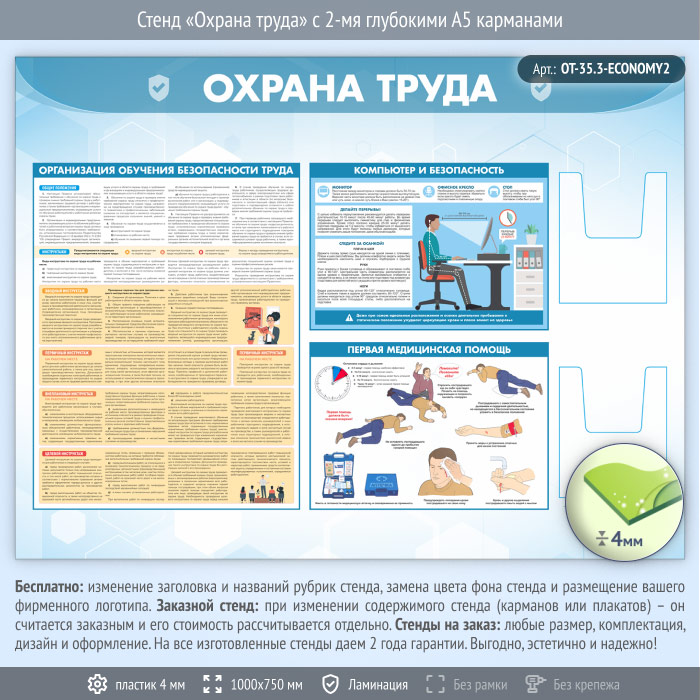 Стенд «Охрана труда» с 2-мя глубокими А5 карманами (OT-35.3-ECONOMY2) в Кызыле купить