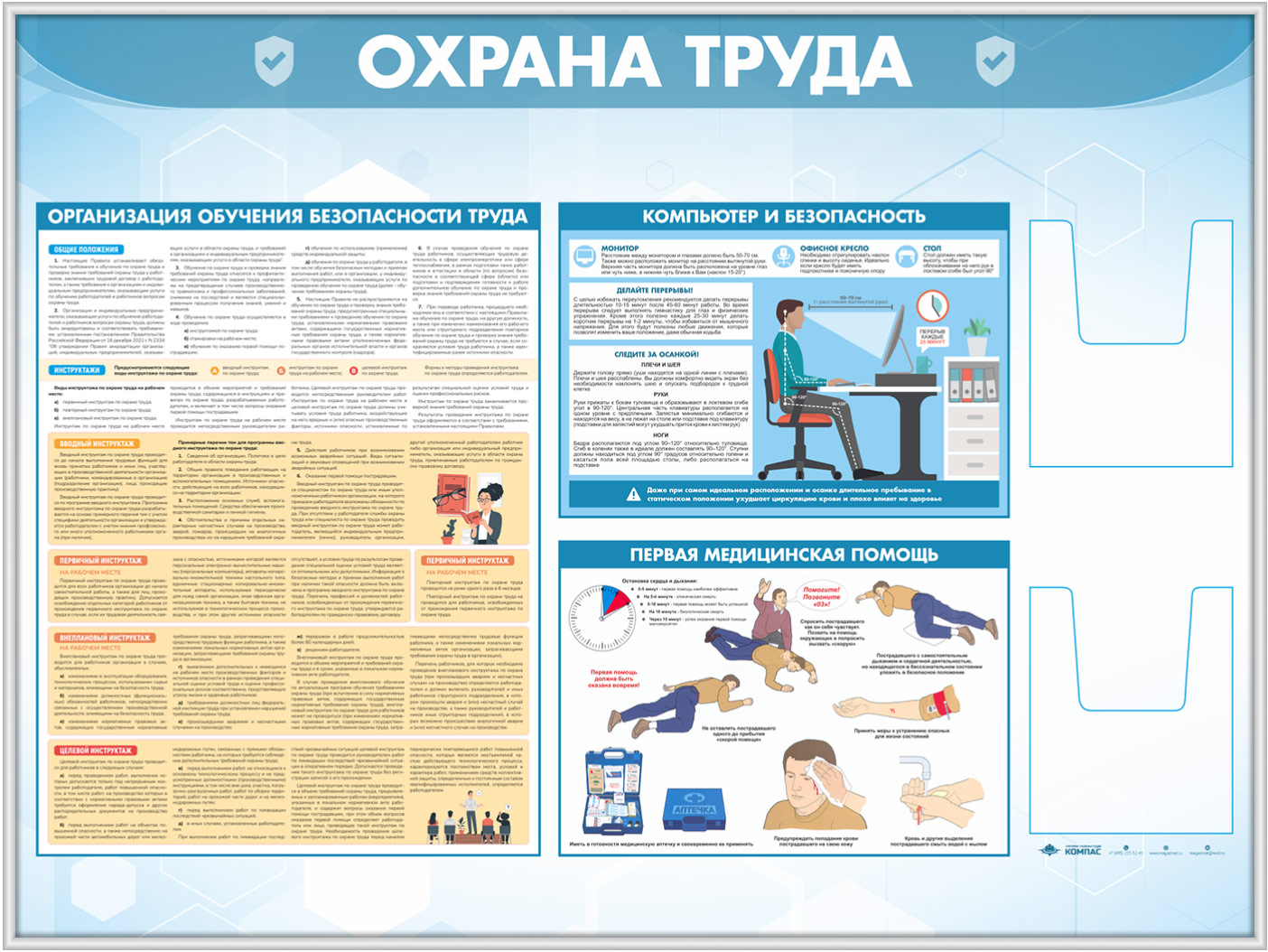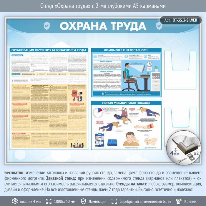Стенд «Охрана труда» с 2-мя глубокими А5 карманами (OT-35.3-SILVER) в Кызыле купить